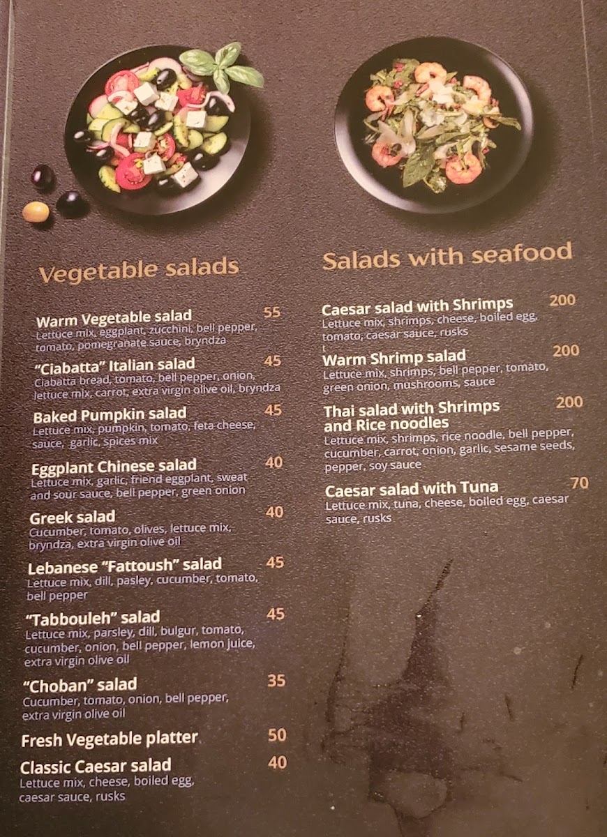 Üzüm Café in Ashgabat, Turkmenistan offers a delightful menu that caters to various tastes, combining fresh ingredients and bold flavors. The salads, such as the Thai Salad and the Caesar Salad with Shrimp, provide a refreshing start to any meal, perfect for those seeking light yet flavorful dishes. The pasta selection is equally inviting, with the Chicken Fettuccine offering a creamy, indulgent option for pasta lovers.